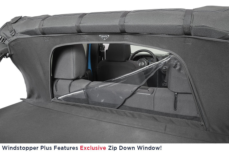 Complete Solution: The MasterTwill Ultimate Combo is the all-in-one stop for a summer combination soft top for the Wrangler JK 2-Door. The Bimini Top Plus, pre-installed header windshield channel, Windstopper Plus, and custom Tonneau cover are all included. All components are custom designed to work together to ensure the best fit and performance.
