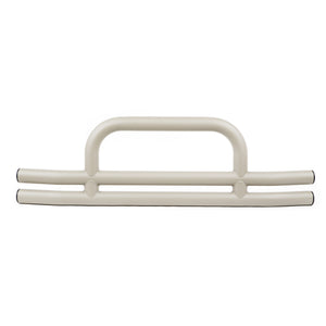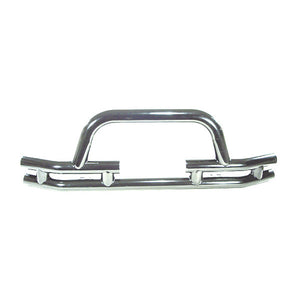 Stainless steel double tube front bumper with raiser will fit 1976-2006 Jeep Wrangler CJ, YJ and TJ. Welded end caps. Limited 5 Year Warranty. 1+ hours.