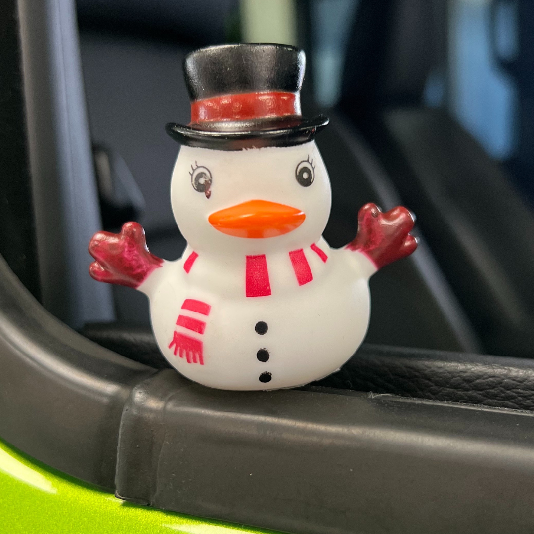 Bring winter cheer to your Jeep with the Snowman Jeep Duck! This festive little duck is styled like a classic snowman—complete with a black top hat, bright red scarf, and matching mittens. Whether you’re spreading holiday joy through Jeep ducking or adding a seasonal touch to your dashboard, this frosty friend is guaranteed to make fellow Jeepers smile. A perfect collectible for the holidays and a fun addition to any Jeep lover’s duck lineup!