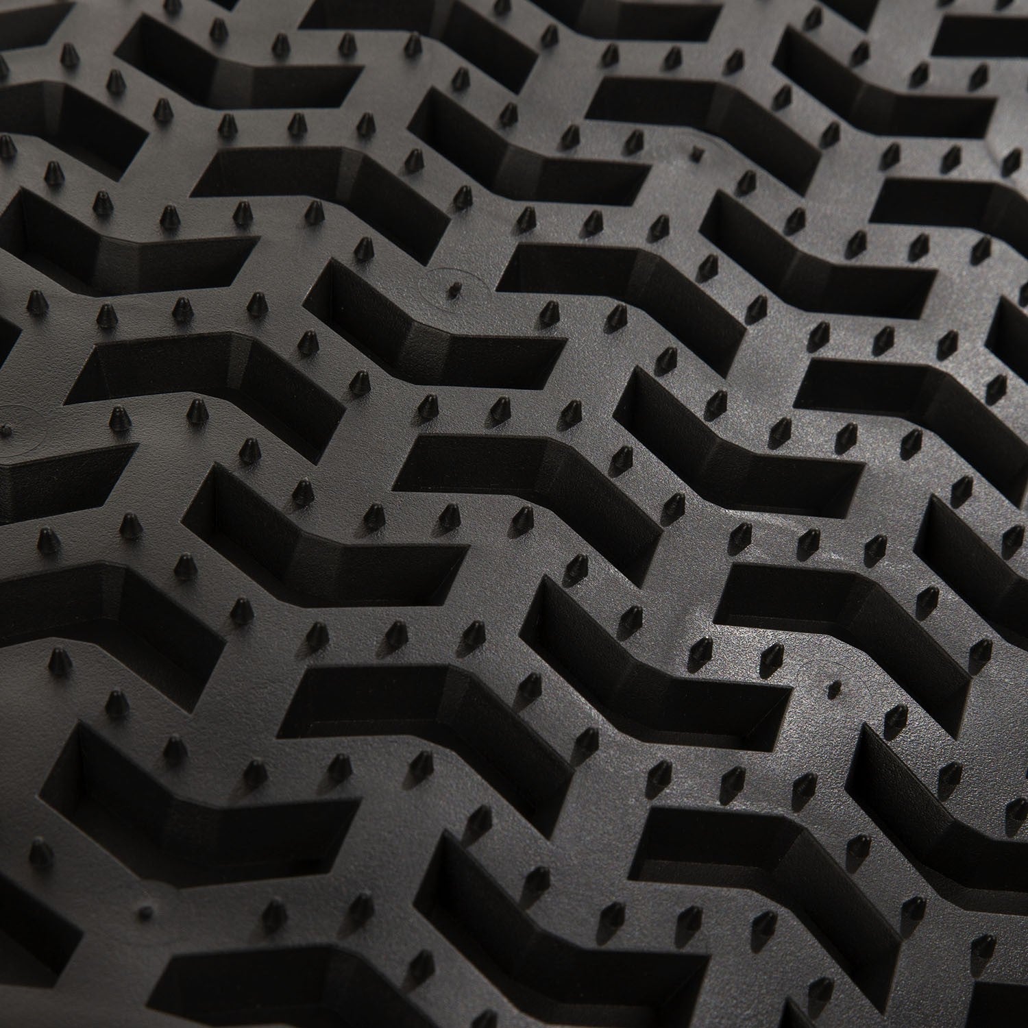 Rugged Ridge Floor liners provide complete protection for the cabin floor of your vehicle while keeping it looking factory fresh. Each liner is injection molded to keep it's shape in all temperatures and is perfectly contoured to your vehicle's floor for precise secure fitment (floor hook attachment where applicable). The raised lip captures all spills, water and debris keeping your interior pristine. The Chevron-shape patented Deep Tread Technology channels liquid away from your shoes keeping them dry. Made of a durable OE-quality thermoplastic material that can withstand the rigor of daily abuse. Backed by a Limited Lifetime Warranty. Patent 8,173,369, D627,285, 2,699,641