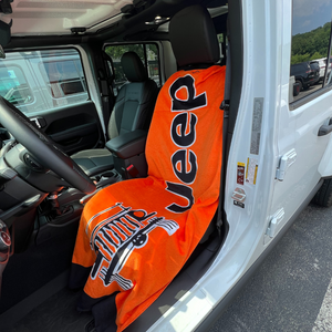 Universal Fit for all Jeep Models! This over-sized Jeep towel is the perfect beach accessory. It makes a great beach towel and doubles as a seat cover with the included carabiner and grommet. With a cool Jeep logo and rugged appeal, this towel is a must for the Jeep lifestyle.