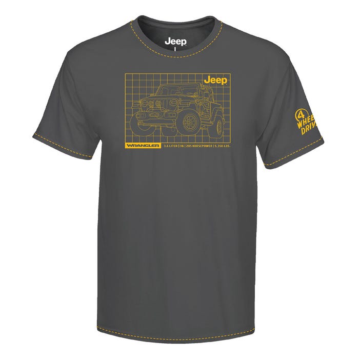 • Jeep® Wrangler schematic graphic on center chest in gold