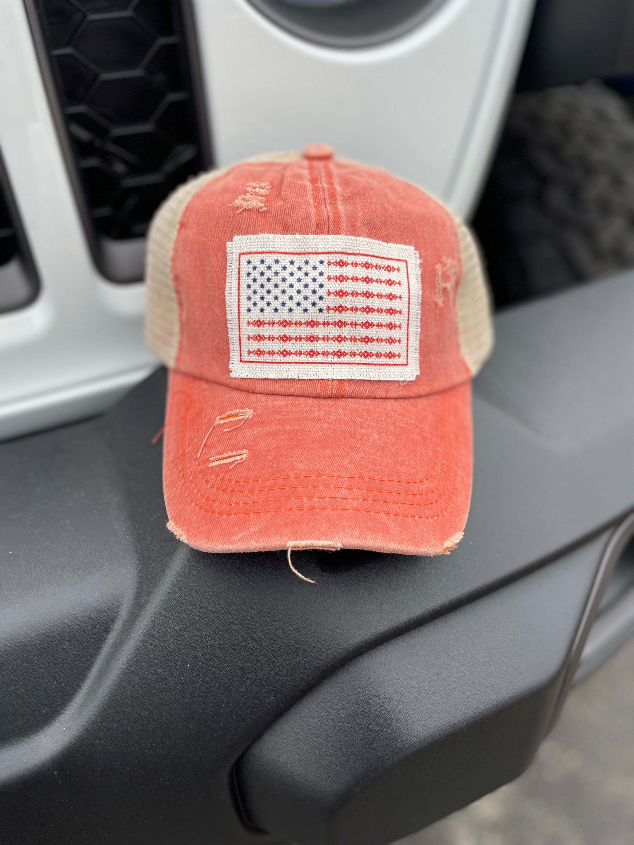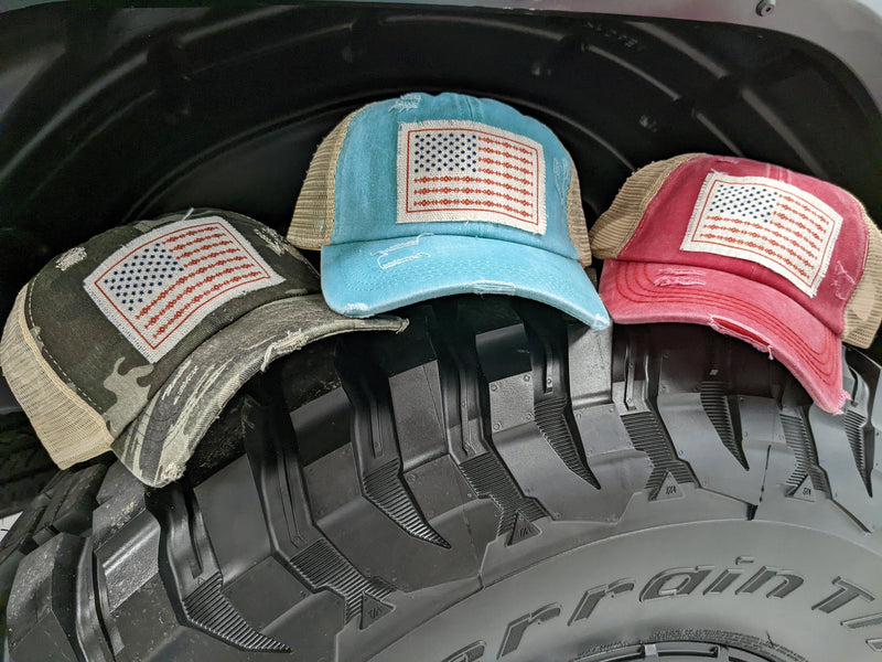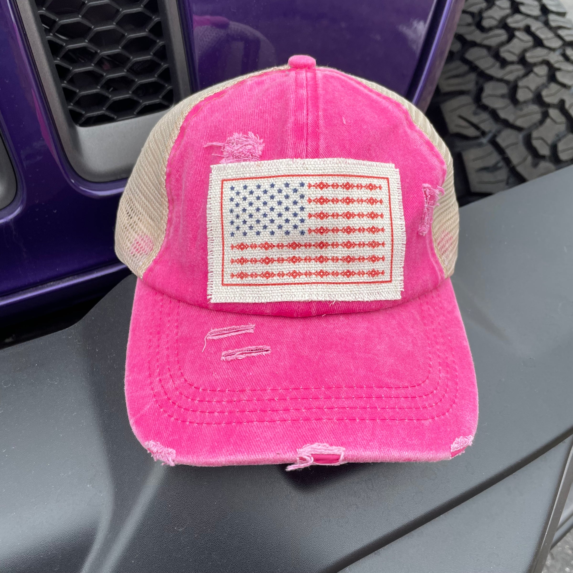 Women's Ponytail Jeep Hats (Adventure, American Flag)