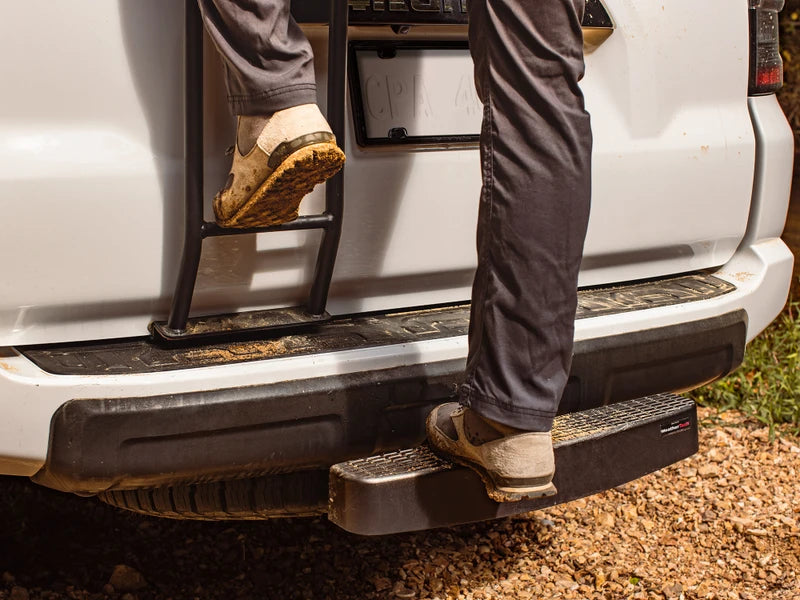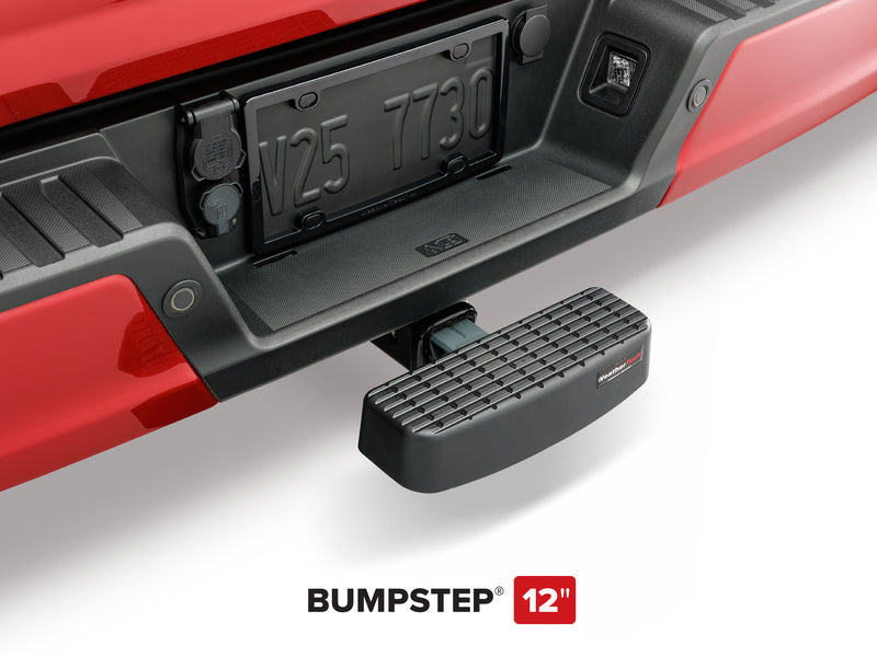 BumpStep is a trailer hitch-mounted bumper protector available in two widths: 12" and 24" (BumpStep XL), that defends your truck or SUV against rear end accidents, dents and scratches. Both options are molded from two proprietary resins for added strength and impact resistance.