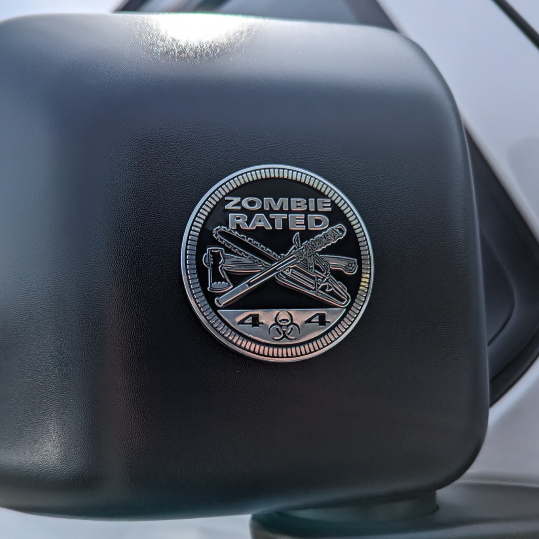 Is your Jeep Zombie Rated? You bet! Let everyone know that your Jeep can survive a Zombie Apocalypse with our Zombie Rated Badge. Put this badge anywhere! Replace your trail rated badge, put it on your mirror, your bumper, wherever you want! Just don't leave your keys in your visor, that's the first place people look when they steal vehicles in a Zombie Apocalypse.