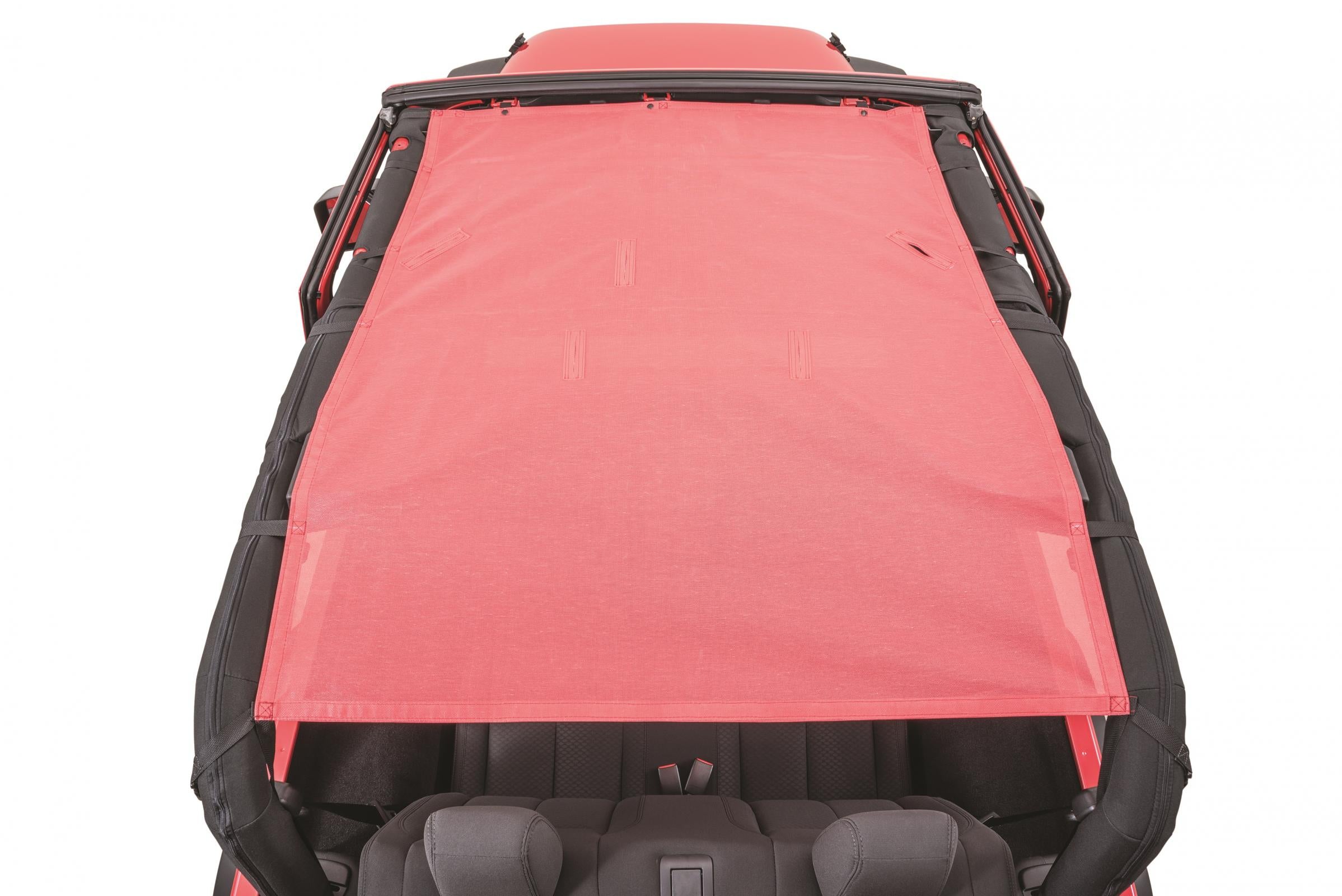 Block the sun but keep the open air experience with a ShadeMaker Freedom Mesh Bimini Top from MasterTop. These easy to install tops attach to the sport bars of your Jeep with straps and buckles providing protection from the sun for you, your front seat passenger and the rear seat occupants.