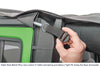 The cable style Bimini Plus top features a unique design that uses a sewn in cable and spring that attaches to the vehicle and provides a tight fit along the factory door surrounds. The pre-installed header windshield channel secures the top along the front of the windshield.