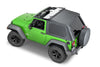 The fabric top is pre-installed on the OE style header for ease of install. The easy to operate front section can be folded back even with the windows removed making it the ultimate flip back Bimini top!