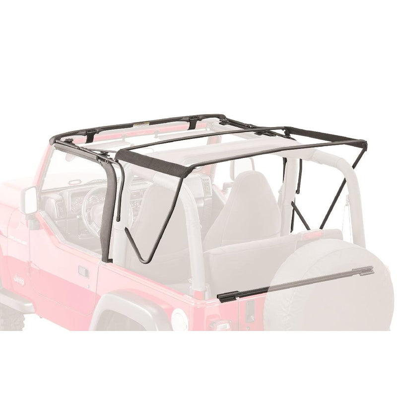 MasterTop full hardware replacement Tops include all the top hardware and fabric needed for a complete soft top installation. Each top includes all the custom fit fabric, bows, door surrounds, tailgate bar, front fold back header and replaceable windows needed to do a complete soft top installation.