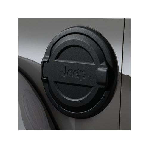 Additional Details: Black powder coat fuel door with Jeep grille logo. The finish is black powder coat with black textured inserts. Door fits two-door and four-door Jeep Wrangler (JL). It is not compatible with vehicles equipped with diesel engines.