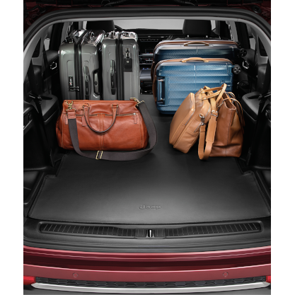 Soft Black vinyl liner covers the entire floor - or folds to cover partial floor areas - and protects your vehicle's carpeting while transporting cargo. Fits all second - or third-row seat combinations. Features Jeep brand logo and includes a Jeep brand storage bag.