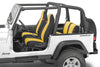 It’s like having custom made wet suits for your Wrangler seats! Protect upholstery from water, dirt, grime and normal wear and tear while adding a customized look. These custom fit seat cover kits are cut and patterned to each specific vehicle providing an exact fit like the original upholstery. Seat covers feature black neoprene backs and sides with choice of seven great inner panel color choices to provide the ultimate interior makeover. The genuine neoprene material provides lasting durability with a soft cushioned feel. This neoprene seat cover material has an excellent thermal resistance that stays cool to the touch on hot days yet warmer during the colder months. Diver Down seat covers retain all seat functions and come complete with front and rear seat cover pairs. Front seat backs feature handy map pockets with generous storage capacity. Our do-it yourself kits install in minutes over the existing upholstery using a combination of straps, buckles, elastic and hook & loop fasteners and there’s no tools required. Hand wash and air dry.