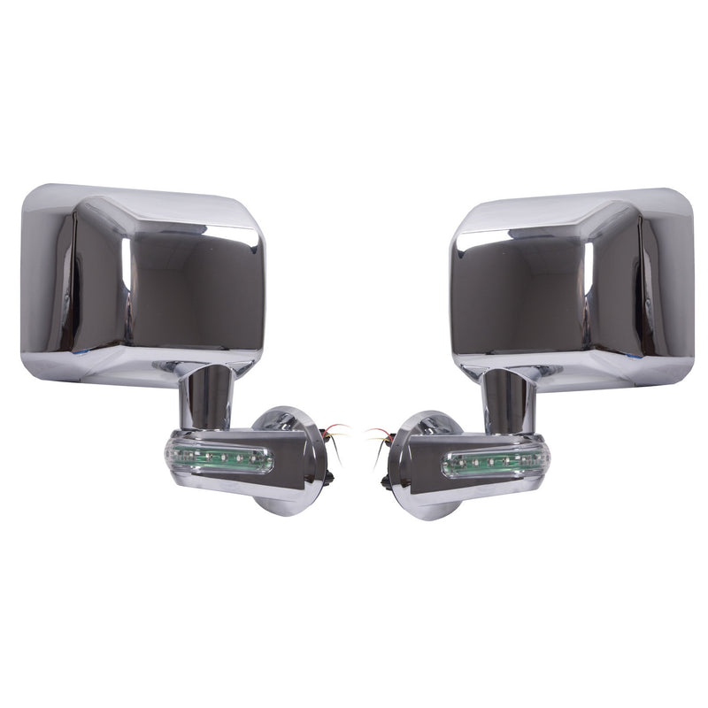 Chromed Plastic side mirrors. OE Style. Pair. UV Treated. Mirror including LED turn indicators. 1+ Hours.