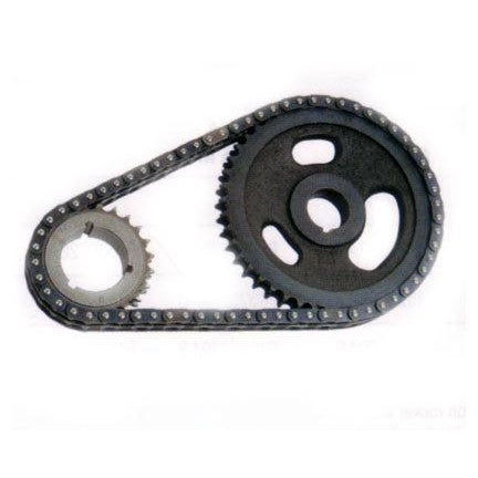 High-strength double roller chain and sprocket sets provide added durability and decreased rotational friction compared to production silent chains. Sets include Magnafluxed sprockets and roller timing chain.