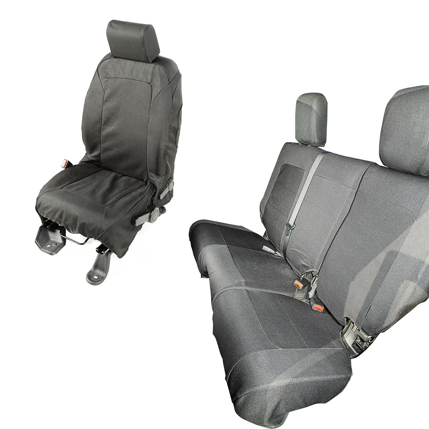 The Rugged Ridge Elite Ballistic-Pro seat covers are manufactured using a heavy duty 1,200 denier material and a unique ballistic weave creating a very strong cover which will stand up to the rigorous use of the avid off-roader. This kit includes two front seat covers and one rear seat cover. Rear seat cover allows you to maintain the 60/40 split fold down function.