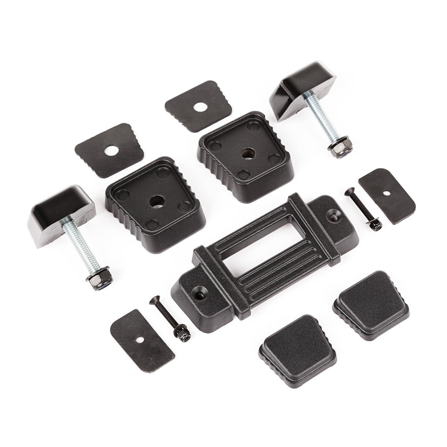The Elite Hood Dress Up Kit from Rugged Ridge adds a stylish custom touch to your JK. Constructed of high-quality 6061 T6 cast aluminum with a unique billet design and a premium black textured powder coat for a long-lasting durable finish. Each Hood Dress Up Kit consists of a buckle-style footman loop, a pair of polyurethane bumpers with aluminum bases, two washer nozzle covers, gaskets and hardware to complete the package. Our Elite Hood Dress Up Kit is designed to be the perfect accent to Rugged Ridge Aluminum Hood Catches (Part 11210.17), as well. Installation instructions included. Patent Pending.
