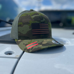 Green Multicam Camo Trucker Hat - One Size Fits Most Flexfit Fitted Hat