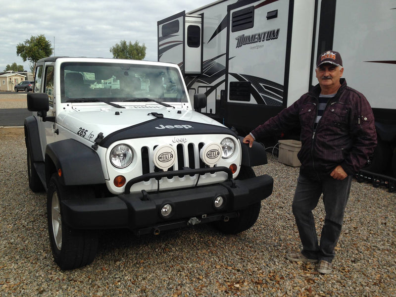 Made of durable black vinyl to help protect your Jeep Wrangler from gravel and road debris. Custom fit with turned under and sewn edges. Covers feature 22-ounce foss backing to help protect the painted surfaces. It can be installed and removed in minutes, and allows for the hood to be opened and closed while the cover is in place.