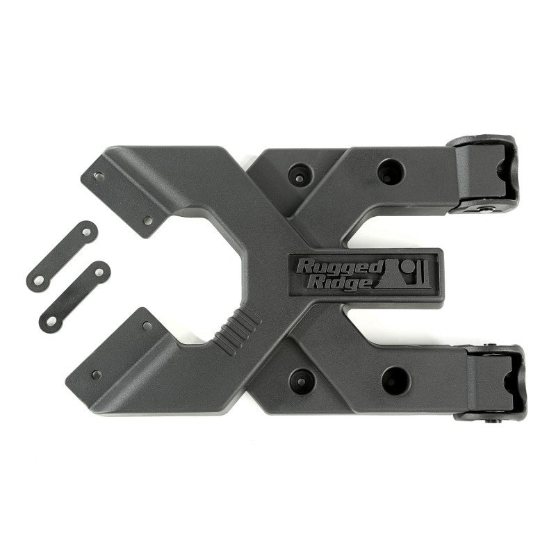 Strengthen your tailgate for increased load capacity. Recommended pairing with Rugged Ridge HD Wheel Mount for maximum strength and wheel/tire adjustability. Maintain one handed entry to your cargo area. Compatible with all aftermarket and OE rear bumpers. Heavy duty die cast aluminum construction. 2+ Hours.
