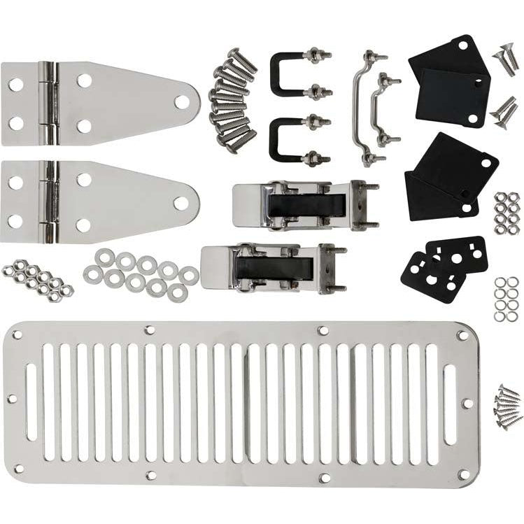 Kentrol's hood kit for yKentrol's CJ/YJ is polished to a mirror finish. Each set is inspected for fit, finish, and function. It comes complete with all hardware needed for installation. An occasional waxing will keep yKentrol's polished finish looking brand new. All Kentrol products come with a limited lifetime warranty.