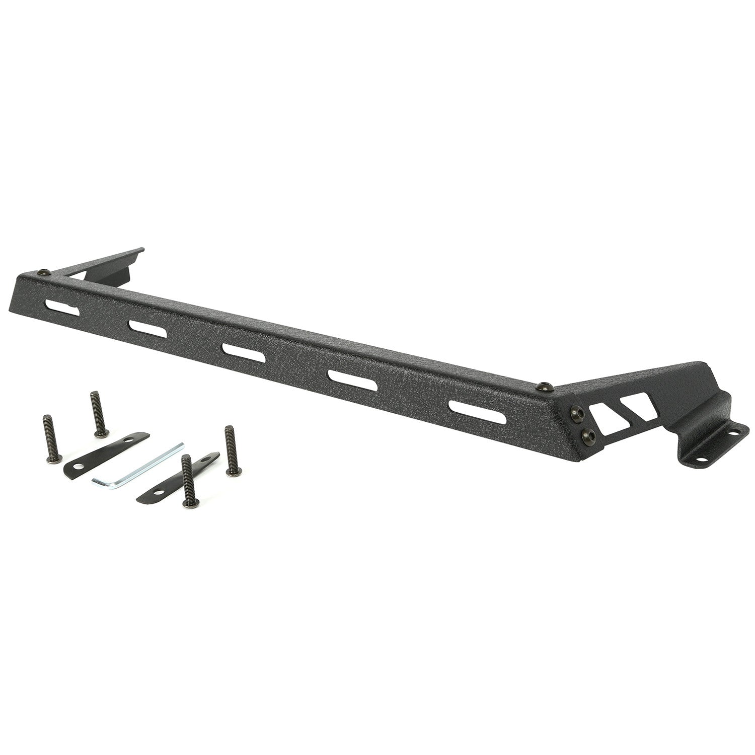 Textured Black hood light bar for Jeep Wrangler. 4 elongated mounting locations. Uses factory mounting locations and hardware. Limited 5 Year Warranty. Less than 1 hour.