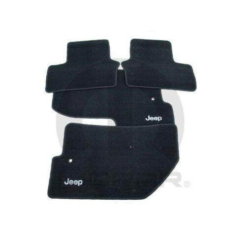 These Premium front and rear Jeep carpet floor mats feature 24 ounce luxury carpet and are custom fit and color coordinated to the interior of your Jeep. Front mats feature a rubber ribbed backing to keep the mats firmly in place and are custom contoured for an exact fit. Also feature brand or vehicle model logo.