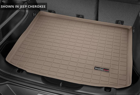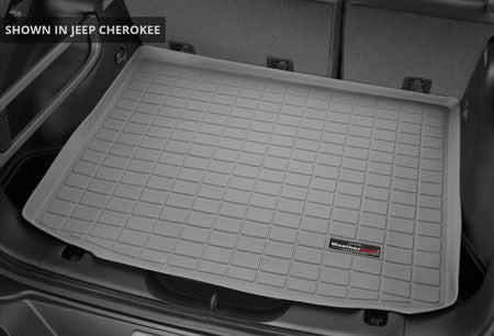 WeatherTech Cargo Liners provide complete trunk and cargo area protection. This Jeep Cherokee Cargo Tray is computer designed to fit your vehicle and have a raised lip to keep spills, dirt and grease off your Jeep Cherokee's interior, protecting your carpeting from normal wear and tear. Made from a proprietary custom blended TPO (thermopolyolefin) that is not only wear resistant, but also remains flexible under temperature extremes. The Jeep Cherokee Cargo Liner features a textured finish which helps to keep cargo from shifting, and is perfect for hauling just about anything from gardening supplies to construction materials to the family pet. Protect your investment with a WeatherTech Cargo Liner. Made in the USA.