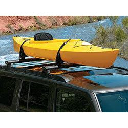 This fully adjustable carrier with latching nylon straps holds one canoe and is easily mounted on Roof Rack Cross Rails (sold separately).