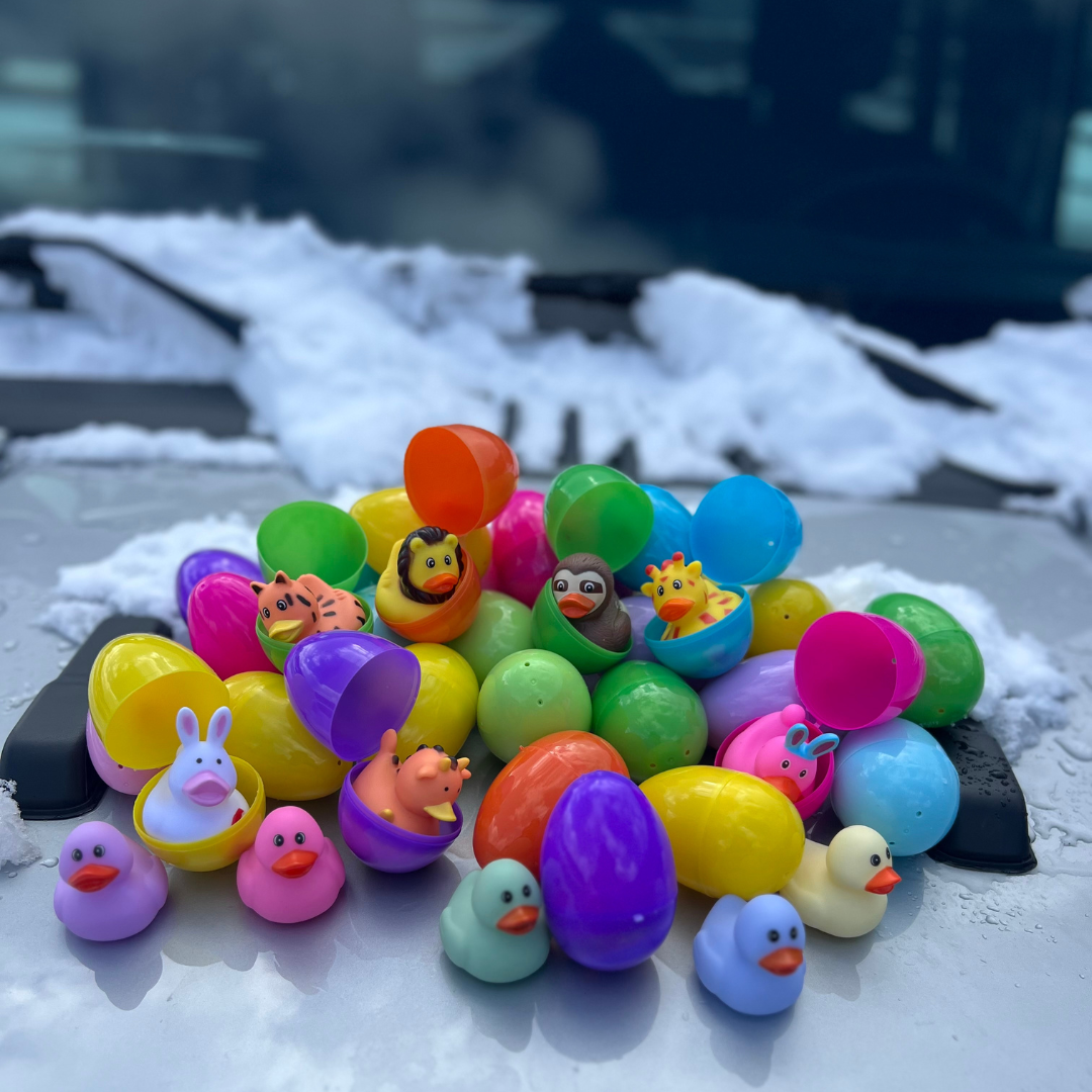 Lions, tigers, and bunnies? Giraffes, sloths and random color pastel ducks. You never know what you'll find in our Mystery Easter Eggs. Buy 1 or buy a bunch. It's fun to duck other Jeepers and even more fun to duck them in an Easter Egg!