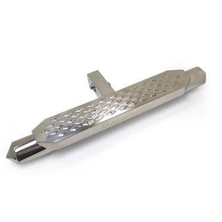 This decorative and useful hitch step by RealWheels fits into any 2 inch standard receiver hitch opening. Easily slide it into place, tighten the bolts, and you've got an easy step up to the roof rack or cargo area of your Jeep Wrangler. The Rear Hitch Step features the RealWheels aggressive torpedo tip design, as well as the innovative REAL-Grip non-slip surface that provides sure footing even when the step is wet. It is constructed from 100% stainless steel that has been polished to a mirror shine.