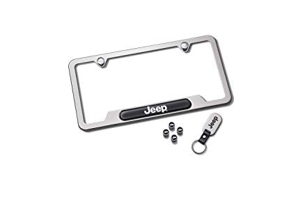 Additional Details: License Plate Gift Set includes one Black License Plate Frame with Jeep logo, one set of four Black Valve Stem Caps with Jeep logo and one Jeep key chain. Fits all Jeep vehicles.Part # 82215853(Black)