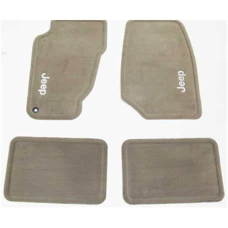 Description: Carpet Mat Set, Light Frost Beige, (includes 2 front and 2 rear) with Jeep logo.