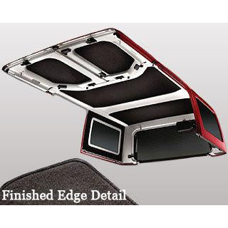 JeepWorld is now offering these great Jeep Hard Top Headliners by Mopar. Engineered using a dense, foam-backed, non-woven fabric the hard top headliner will create a barrier to help maintain cool temperatures in your Jeeps interior during summer while insulating your interior during winter months. Not only does this headliner kit look good, but it helps insulate as well, all while helping to soften air noise and rattling noises while driving. Made with a half inch thick, non-woven cushioning material and features neatly finished edges. Mopar has developed this headliner over the last 3 years to be the best on the market, ensuring extreme durability. Easy install. Buy yours today! Each kit includes 4 roof headliners and two window wall liners. Black only.