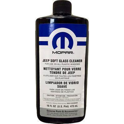 Mopar Jeep Soft Glass Window Cleaner safely cleans all plastic windows without scratching. Removes fine scratches to improve visibility and provides UV protection to help prevent yellowing. Simply rinse window, then apply Jeep Soft Window Cleaner with a clean towel. 16 oz.