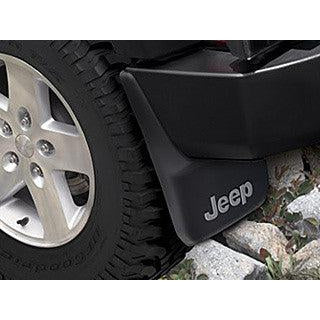 Description: Rear Splash Guards (2), Black, with Jeep Logo. Will not fit with off-road or tubular rear bumpers.