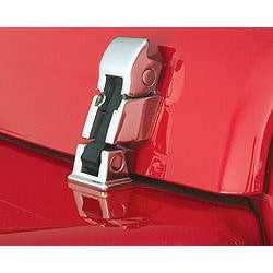 These stainless steel hood catches for the Jeep Wrangler YJ are sold in pairs and make a great addition to the hood of a Wrangler. Installation is easy and does not require any drilling!