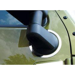 These Jeep Wrangler Stainless Steel Mirror Bezels by RealWheels will spruce up the look of your Jeep by providing a sharp accent piece around the space where your factory side mirror attaches to your vehicle. Stainless steel trim accessories by RealWheels are designed to enhance the good looks of your Jeep and to last a long time, NEVER rusting, pitting, or corroding. Flashier and brighter than chrome, each mirror bezel is precision engineered from the highest quality materials and attaches using 3M automotive adhesive. Installation is secure, quick, and easy while the mirror bezel will hold in place for a long life.