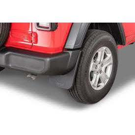 Mopar's Molded Splash Guards are designed to provide excellent lower body protection by minimizing the spray of water, mud, snow and rocks. They are tested to all corporate standards to ensure superior durability and are molded to the contours of the vehicle for a custom fit. This set of two splash guards have the Jeep Logo, are Black, and fit the REAR wheel wells of narrow body vehicles. Not compatible with Rock Rails.