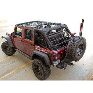 The full Rugged Ridge Cargo Net System is a superior cargo netting for your Jeep Wrangler. This black, waterproof, UV treated cargo net is made to be fade and tear resistant. Stronger than other nets on the market, each set is double stitched and glue bonded to exhibit high strength under rugged usage. Play harder while keeping full confidence that this new Jeep cargo net will get the job done. Made for both the JK 4-Door and 2-Door.