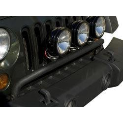 The Ultimate Light Bar for your Wrangler! This exciting new design has been created to give the durable look of a five tab light bar with features found nowhere else. Through extensive testing, this heavy duty light bar incorporates a special wind deflector below the light bar to dramatically reduce whistling and buffeting of your soft top. Each bar hugs the contour of your windshield providing a great look while not interfering with the use of your hard or soft top. Oversized 2" textured black or polished stainless tubing attaches to your windshield mounts with no drilling. Each Light bar has five light tabs for use with Rugged Ridge Lighting options (fits up to five 7" lights). Lights not included.