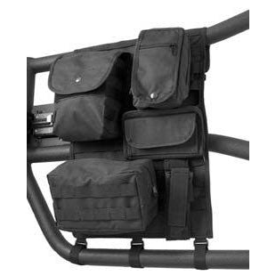 Add an adjustable Molle Pals storage solution to your tube doors. These Tube Door Cargo Covers are made from 600 denier polyester fabric and have a durable vinyl backing. This storage solution features an assortment of five different storage pouches with internal storage compartments.