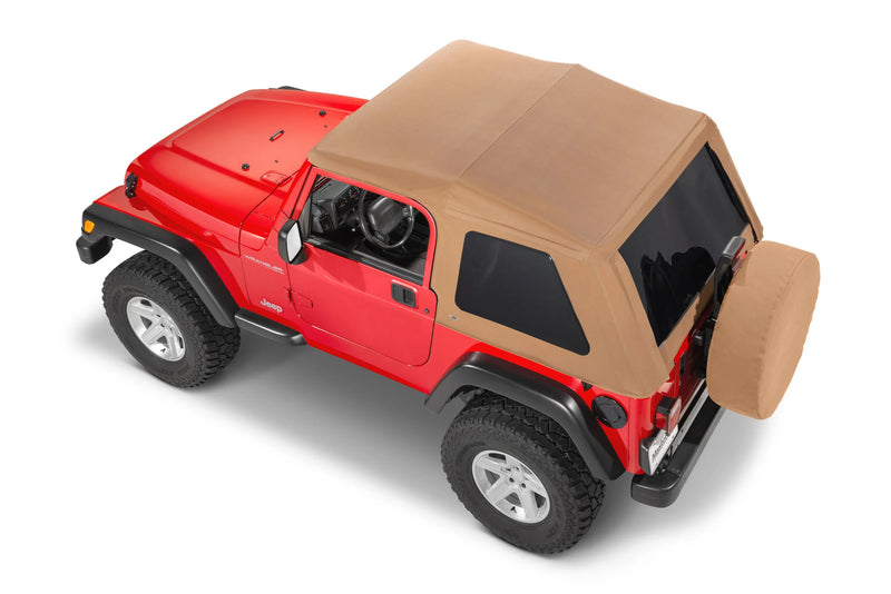 Complete Top Setup: This complete top kit includes all of the necessary components for installation on your Wrangler TJ. New Topdeck, door surrounds, tailgate bar and the front flip-back bow assembly make this kit a must-have to enjoy the open air.
