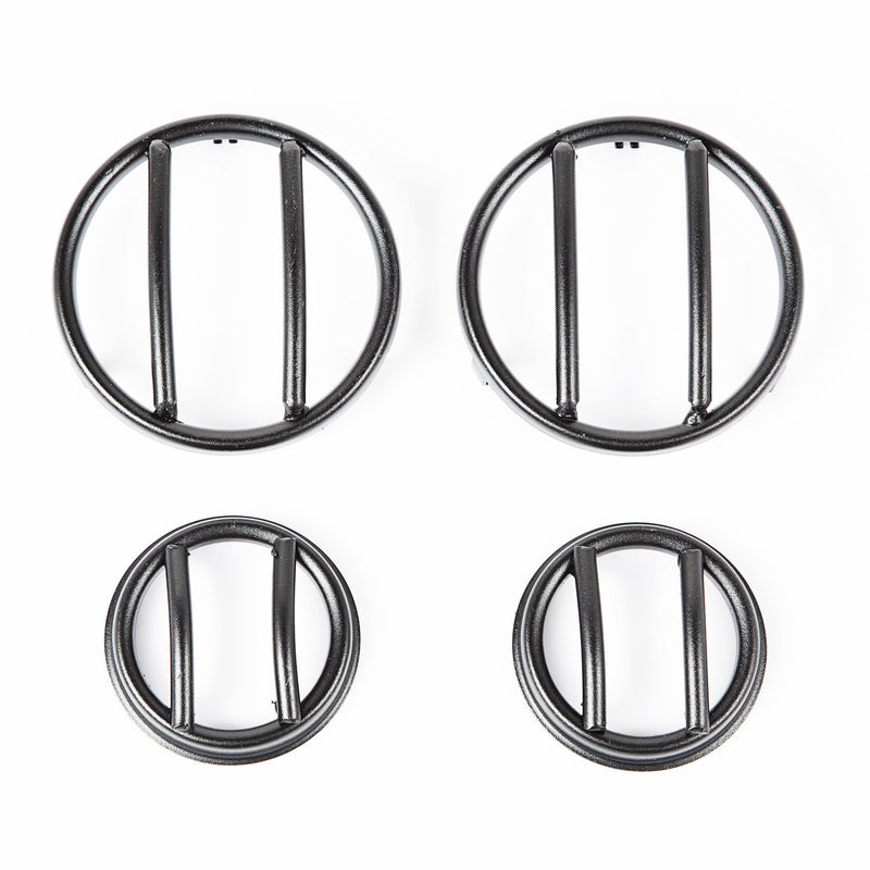 Protecting your Wrangler's turn signal and side marker lenses just got a whole lot easier! Now offering affordable protection and a rugged look, this turn signal and side marker guard kit is constructed of durable textured black powder coated steel, designed to last and provide a true attention to detail. The side marker light guards are a great complement to our front light euro guards. The turn signal light guards are designed to match our headlight euro guards and feature the same great style and construction. No drilling required for installation.