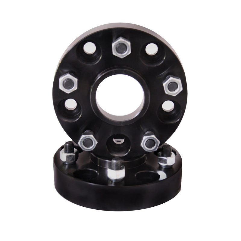 These black anodized aluminum spacers move your Wrangler's wheels out an extra 1.5" to help fit wider tires and give your vehicle a wider track and improve stability. Constructed of double anodized black extra thick machined aluminum for long life and extra corrosion resistance. All hardware is grade-8 for extra strength. Included are 10 pre-installed grade-8 wheel studs and 10 lug nuts.
