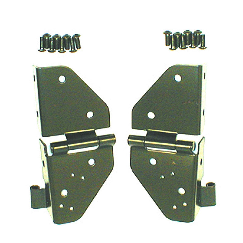 These Rugged Ridge windshield hinges are black powder-coated for a tough look and long lasting finish. All necessary hardware is included, and since they're direct bolt-on replacements, you'll have your Jeep ready to show and go in no time. Give your Jeep a fresh look for the trails with some class for the street, compliments of Rugged Ridge windshield hinges.