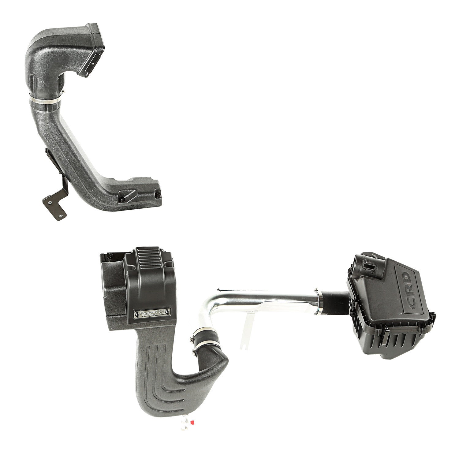 This XHD Low/High Mount Snorkel System was designed for use with 2.8L diesel engines. The XHD Modular Snorkel is the first snorkel engineered with the versatility of interchangeable intake heights. By relocating the vulnerable stock air intake through an internal duct system just below the windshield, the XHD Modular Snorkel helps to eliminate dust-clogged air filters and the risk of hydro-locking your engine. Jeep owners can easily swap the standard low-mount intake for a 21-inch, high-mount 'ram' intake on the Rugged Ridge XHD snorkel system for whatever off-road conditions they may face, including tackling harsh dusty trails or deep water crossings. Each snorkel is also engineered to function with a host of other Rugged Ridge products, including its Windshield Mount Light Bar, Windshield Auxiliary Light Mounting Brackets, Sherpa Roof Rack, and the new Exo-Top System. Installation requires only minor modifications to the internal fender flange and avoids any cutting or drilling to the Jeep's exterior that other snorkel kits may require. Patent No. 8,960,347.